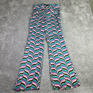 Zara Pants Women's Medium Colorful Flare Mid-Rise Striped Groovy