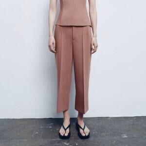 Zara Pants Womens Mid-Rise Françoise Culottes Cropped Office Career Brown XS