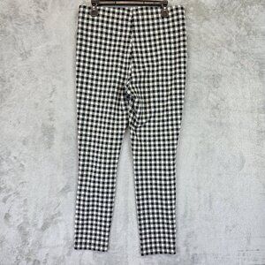 Zara Pants Womens XL Black White Gingham Check Stretch Skinny Ankle Zip Front