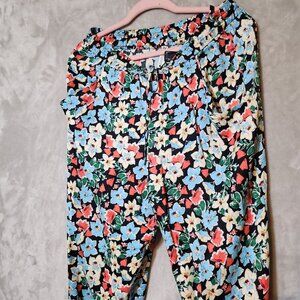 Zara Parachute Floral boho Chic Comfort relaxed fit Medium elastic waist pants