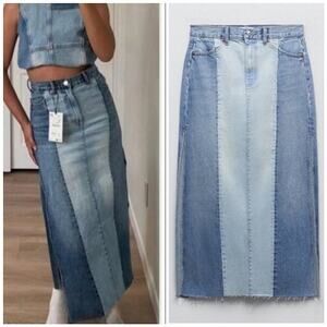 Zara Patchwork Denim Frayed Maxi Skirt Blue size small