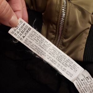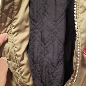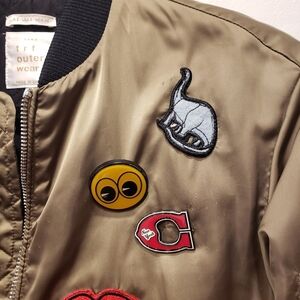 Zara satin utility jacket in good condition (see last photo for wear). Embellished with pins and patches. Zipper front closure. Ribbed cuffs. Color - Olive. Size - S.