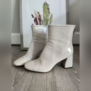 Zara Patent Faux leather Ecru Off White Booties sz 40