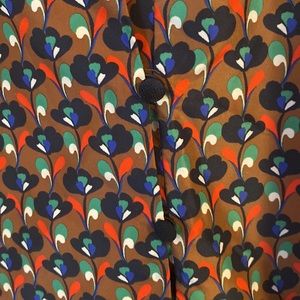Beautifully patterned top with fabric covered buttons down the front.