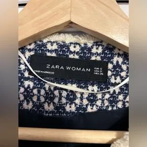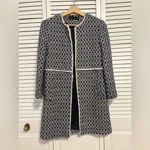 Bought this coat from Zara around 5-6 years ago. One of my closet favs but it’s definitely time to swap for another. I don’t have any tags on the jacket anymore, but if I was going to guess, the outer shell seems to be made of thick woven cotton material, the inner shell is probably satin.