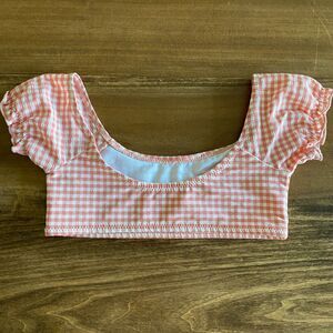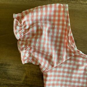 Zara Peach Gingham Seersucker Swim Top Girls' 8-9