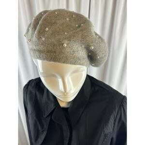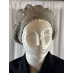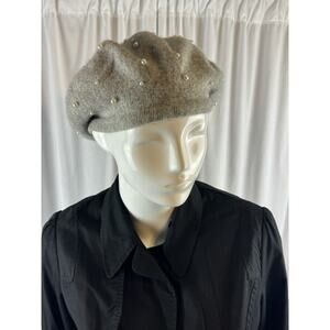 Zara Pearl Dorned Wool Beret Gray S-M Sustainable 68-53