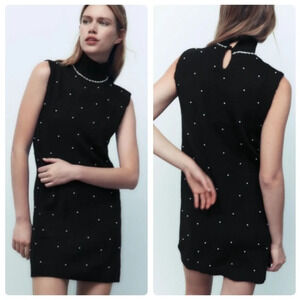 Zara Pearl Trim Knit Mini Dress