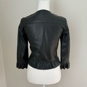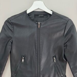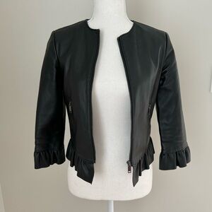 Zara Peplum Ruffled Faux Leather Cropped Zip Up Jacket XS