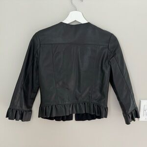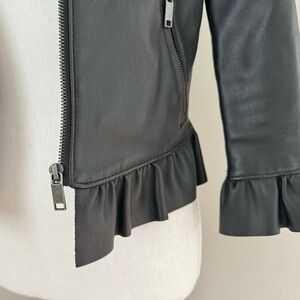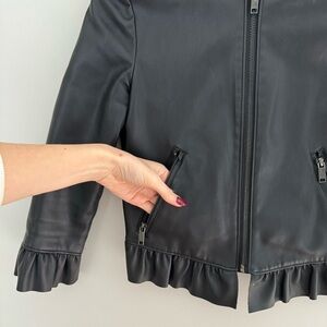 Zara Peplum Ruffled Faux Leather Cropped Zip Up Frill Jacket XS