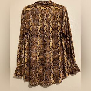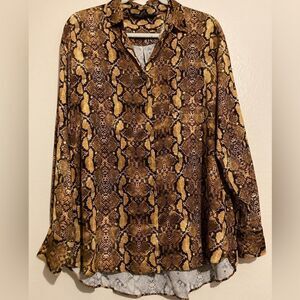 Zara Phyton Snake Oversize Button Down 100% Viscose Shirt Size S Approximately Measurement:Shoulder 19”Pit 23”/Sleeve 24”/Shoulder to Hem 31” Excellent Condition