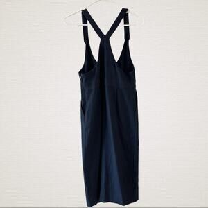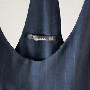 Zara Pinafore Midi Dress Womens Navy/Red Medium Pinstripe Overalls Casual Basic