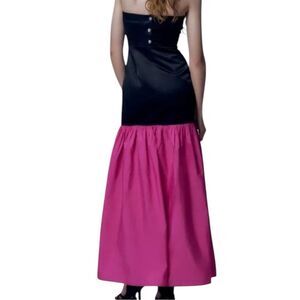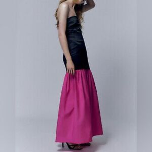 Zara Pink & Black Color block Strapless Maxi Dress, Back button closure, Invisible side Zipper Closure. NWT Approx measurements Pit to Pit 15.5", Length 48".NWT