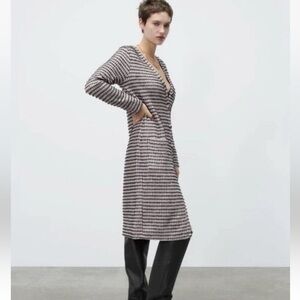 Zara Pink & Black Tweed Long Button Cardigan Dress Size Small