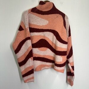 Zara - Pink Burgundy Jacquard Wave Mock Neck Long Sleeve Sweater Size Small