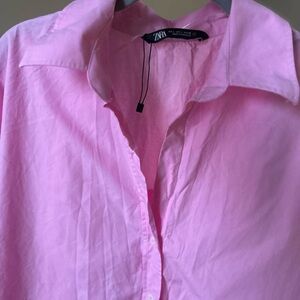 Zara Pink Button up Shirt with Relaxed Fit