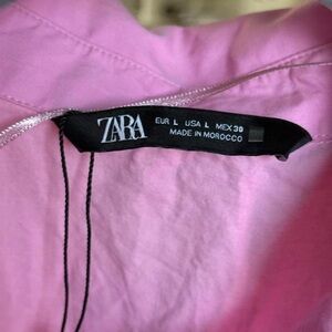 Gorgeous oversized button-up shirt from Zara in a vibrant bubblegum pink color. Features a relaxed fit with a pointed collar and long sleeves—perfect for layering, tucking into jeans, or wearing as a lightweight cover-up.