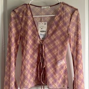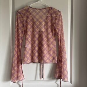 Zara Pink Checkered Maxi skirt and Flared Sleeves top