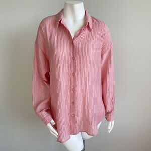 Zara Pink Coquette Button Down Shirt Twisted Cut Out Back Oversized Size Medium