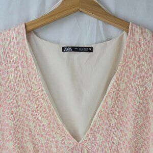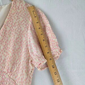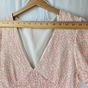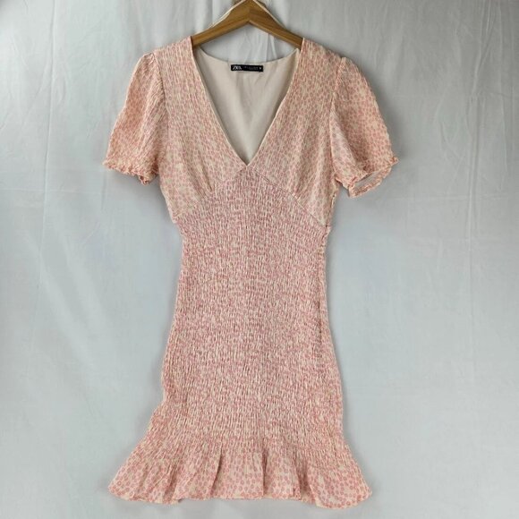 Zara Pink Ditsy Floral Smocked V-Neck Mini Dress Size Large