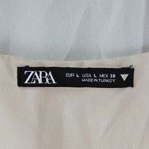 The Zara Pink Ditsy Floral Smocked V-Neck Mini Dress in size Large is a stylish and feminine piece perfect for a party or cocktail occasion. Featuring a beautiful floral pattern in a vibrant pink color, this dress has a V-neck and balloon sleeves for added flair. Made from viscose material with a rayon fabric type, it has a zip closure and is designed with smocked details, giving it a trendy and unique look. Ideal for the summer and spring seasons, this mini dress embodies a Barbie-inspired charm with its daisy and blue character accents.