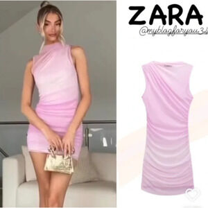Zara Pink Draped Tulle Mini Dress Sleeveless Asymmetric Ombre Tie Dye Size XS