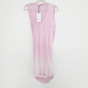 Zara Light Pink Tulle Mini Dress Sleeveless Asymmetrical Lining Ombre Tie Dye Size XS