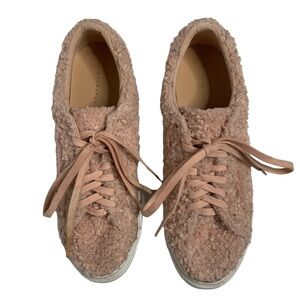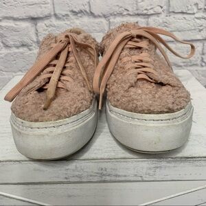 Zara Pink Faux Sherpa Lace Up Platform Fashion Sneakers