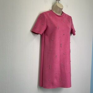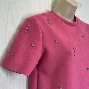 Zara - Pink Faux Suede Jewel Rhinestone Light Short Sleeve Mini Dress Size XS