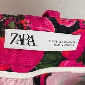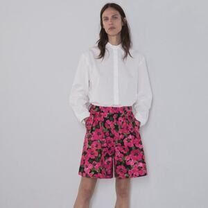 Zara Pink Floral High Waisted Pleated Bermuda Shorts Size XS