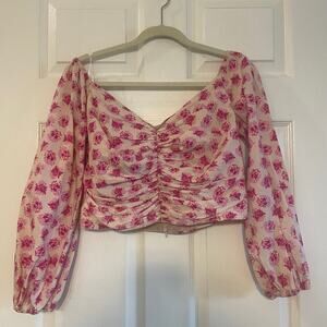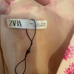 Zara Pink Floral Off The Shoulder Bardot Top Size Large. Ruched detail with Sweetheart neckline and Puffy shoulders. Hidden back zipper. Perfect for spring and summer.
