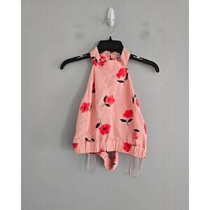 Brand new with tags Zara Pink Floral Open Back Top L NWT. Pinj with Red floral detail.