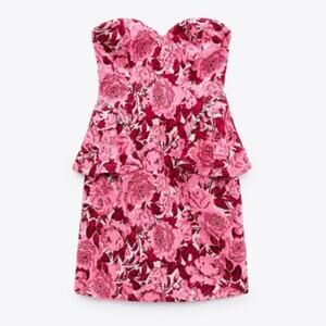 Gorgeous Zara Pink Floral Strapless Jacquard Mini Dress Bloggers Favorite Size Large