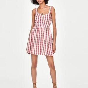Zara Pink Gingham Retro Rockabilly Dress (S)