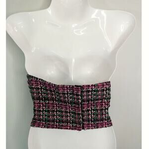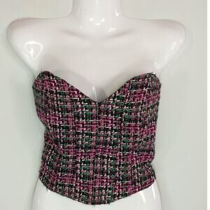 Zara Pink & Green Tweed Corset Sweetheart Neck Bustier Club Chic