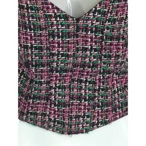 Zara Pink & Green Tweed Corset Womens XL Sweetheart Neck Bustier Preppy Acadmia