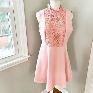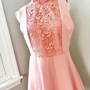 Zara Pink Guipure Lace Scalloped Neck Skater Dress
