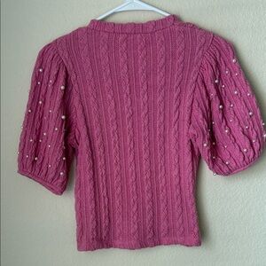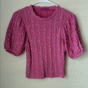 Zara Pink Knit Blouse with Pearl Details
