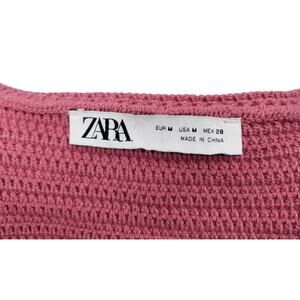 Zara Pink Knit Crop Top, Square Neck, Sleeveless, Size M, Trendy Summer Style