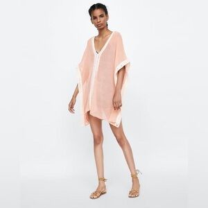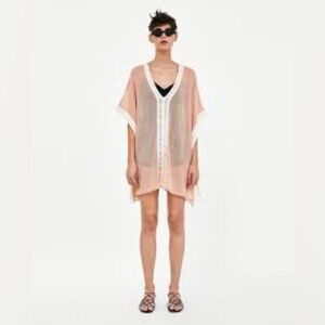 Zara Pink Knitwear Oversized Tunic Coverup Sweater