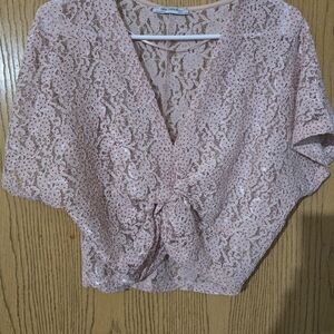 Elevate your style with this elegant pink lace top. Featuring a chic knot front design, it's perfect for any occasion.