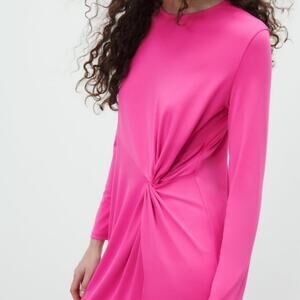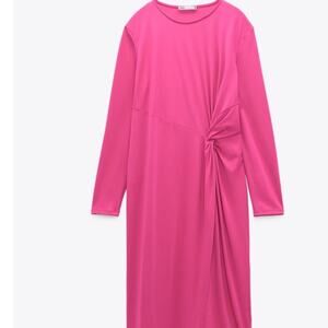 Zara Pink Long Sleeve Midi Dress w/Front Tie NWT Size Small