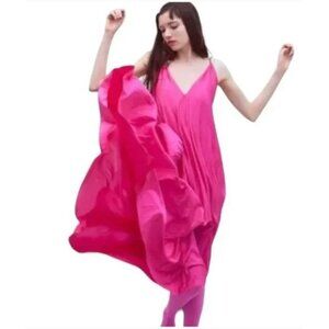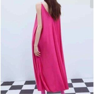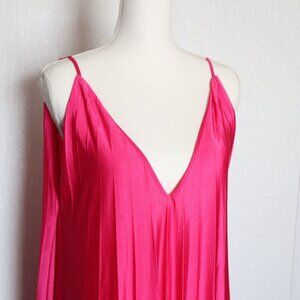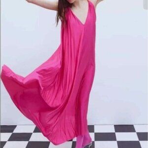 Elegant pink maxi dress. Features a flowing silhouette. Perfect for any occasion.