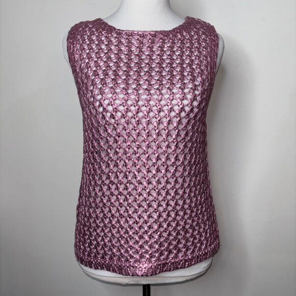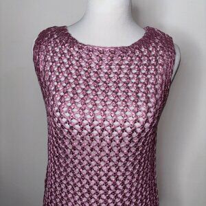 Zara Pink Metallic Crochet Sleeveless Knit Top Women's Size S