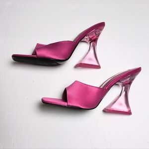 Zara Pink Methacrylate Vibrant Minimalist Style Heeled Satin Sandals 38/7.5
