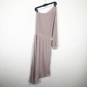 Zara Pink Midi Dress Small One Sleeve Metallic Stretch Knit Cocktail Party