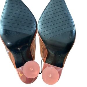 These Zara mules feature a sleek, backless design with a pointed toe, crafted in a stunning pink hue. The transparent material gives them a modern, glass-like appearance, while the high stiletto heel adds a touch of elegance. Perfect for making a statement, these shoes combine style and sophistication effortlessly.