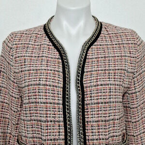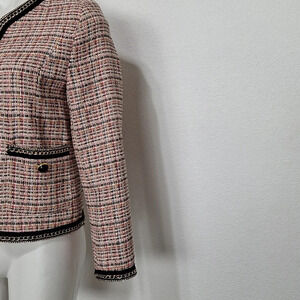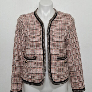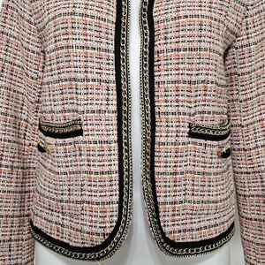 Zara Pink Multicolor Academia Tweed Coquette Chain Trim Pockets Cropped Blazer M