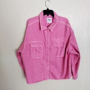 Zara Pink Oversized Denim Jacket | Shacket Style, Size M