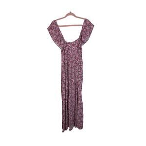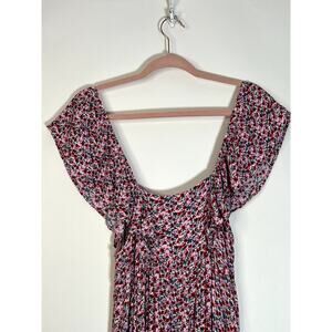 Zara Pink & Red Floral Print Ruffle Strap Maxi Side Zipper Tiered Long Dress XS
